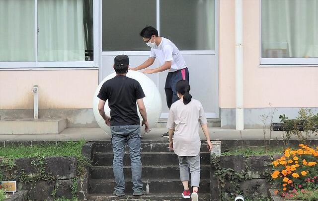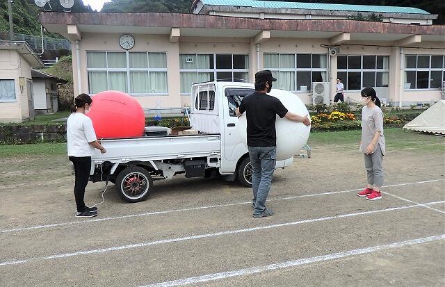 PTA副会長さんの工場で空気を入れた「玉」を会長が持ってきてくださいました。