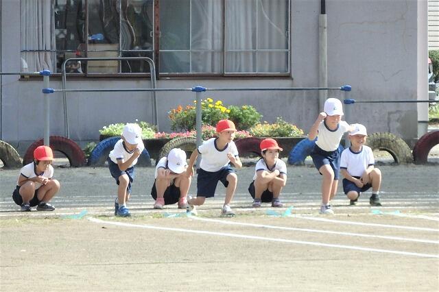 1・2年生の徒競走です。「位置について、よ~い、ドン!! 」