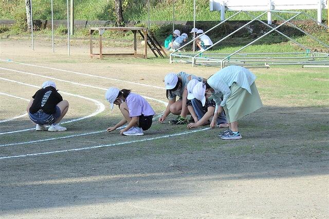 運動会成功に向け、先生たち、いつも一生懸命です。準備も全員で、楽しそうに「最高の笑顔」です。