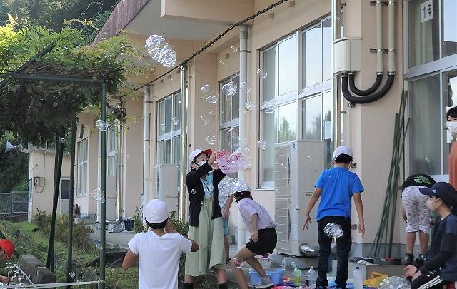 たくさんのシャボン玉が、田原の空に飛んでいきました。