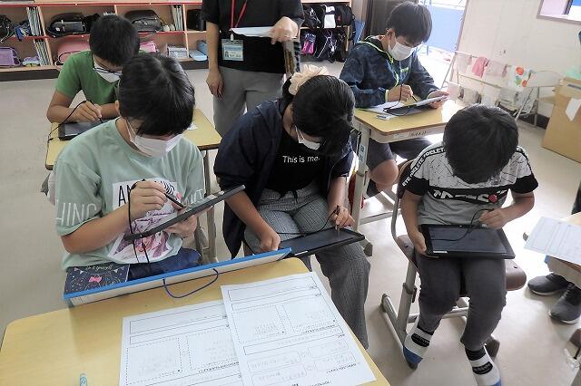 5年生は、タブレットを活用して運動会の思い出を作成しました。