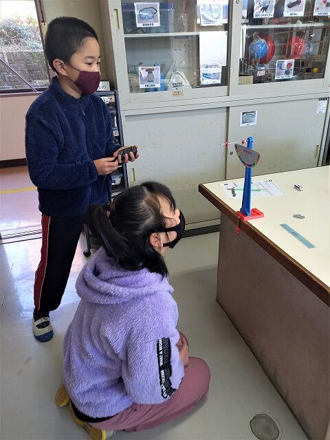 5年生が、理科の学習で「ふりこの実験」をしています。