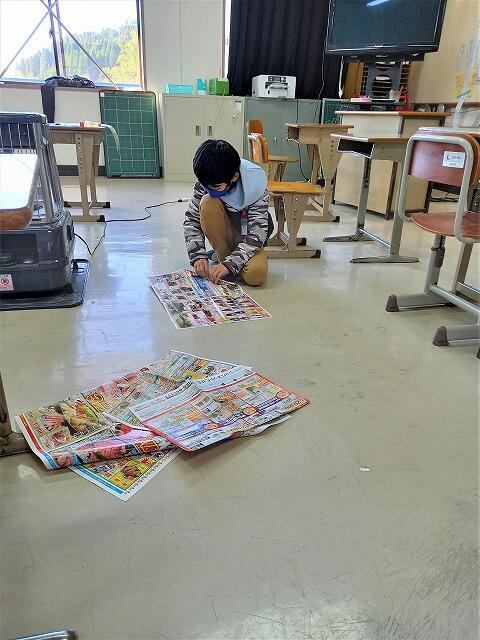 そのころ4年生は、チラシを細く丸め、棒のようなものを作っていました…。