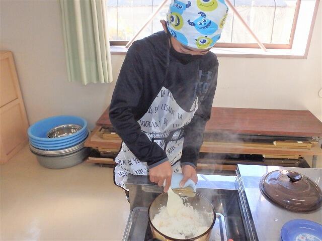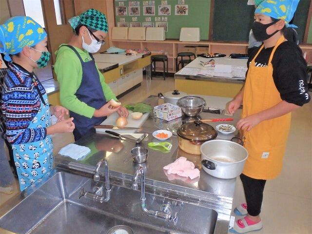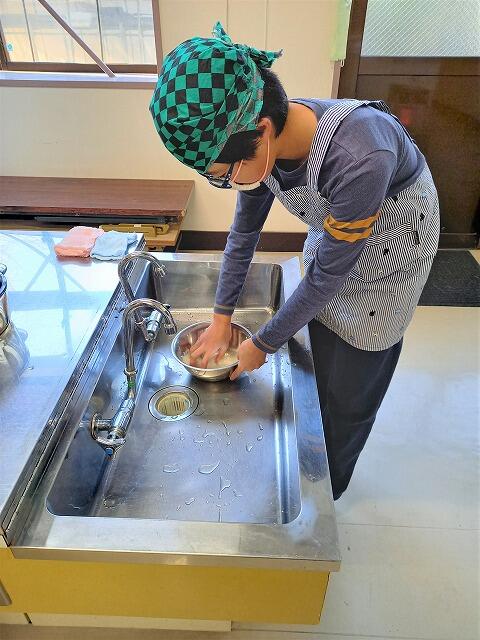 それぞれのグループで、野菜を切ったり、お米研ぎをしたりしました。