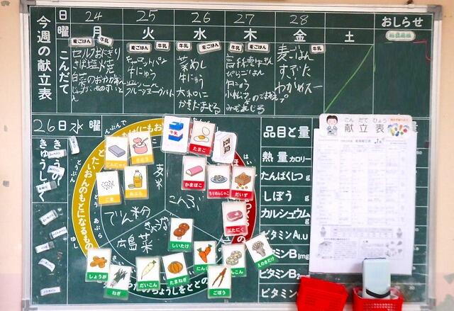 田原っ子は、ろう下を通るたびに、「今日のこんだて」を確かめるほど、田原小の給食が大好きです。