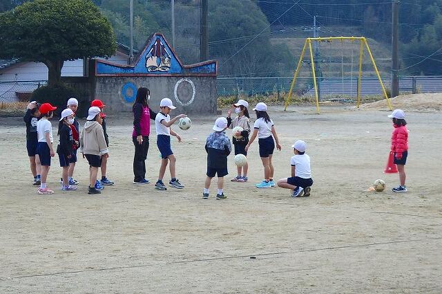 運動場の外気温は3℃前後ですが、半袖の体育着で活動している田原っ子も見られます。