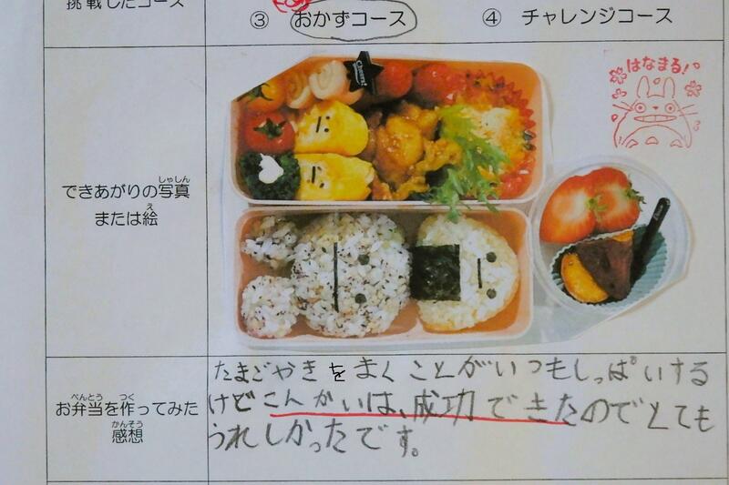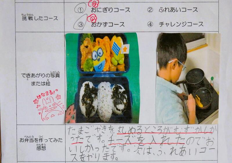 田原小の全児童が、①おにぎりコース ②ふれあいコース ③おかずコース ④チャレンジコースの中から選んで実践しました。