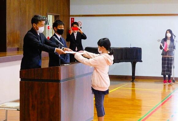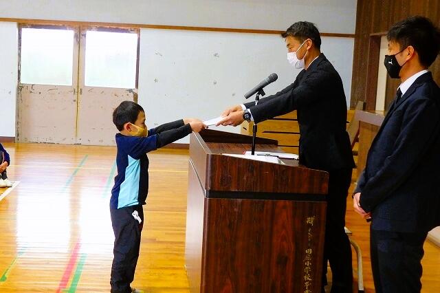 校長先生から、各学年の代表児童に「修了証書」が手渡されました。