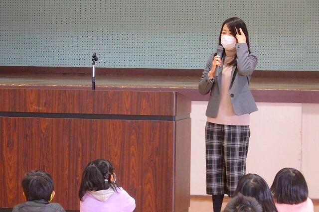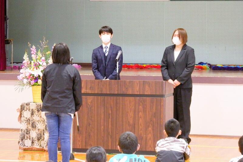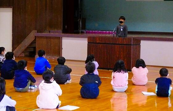 1年生の代表児童が、1年間で成長した内容「ヒーローになれたこと」を発表しました。