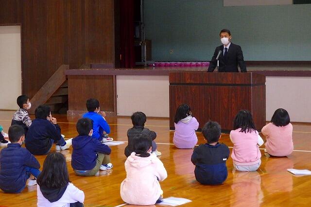 校長先生は、児童の1年間の「心」の成長や地域の方々や家族の「見守り」について話されました。