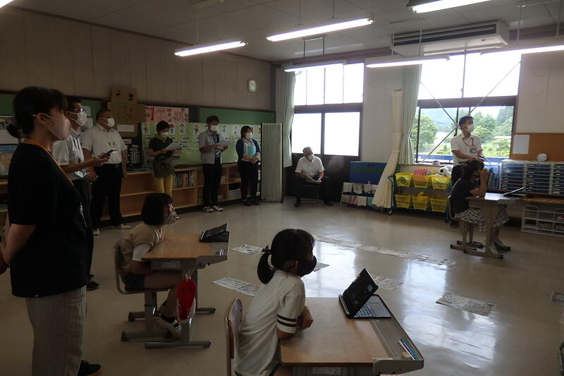 高千穂町教育委員会と北部教育事務所の方々による学校訪問が行われました。