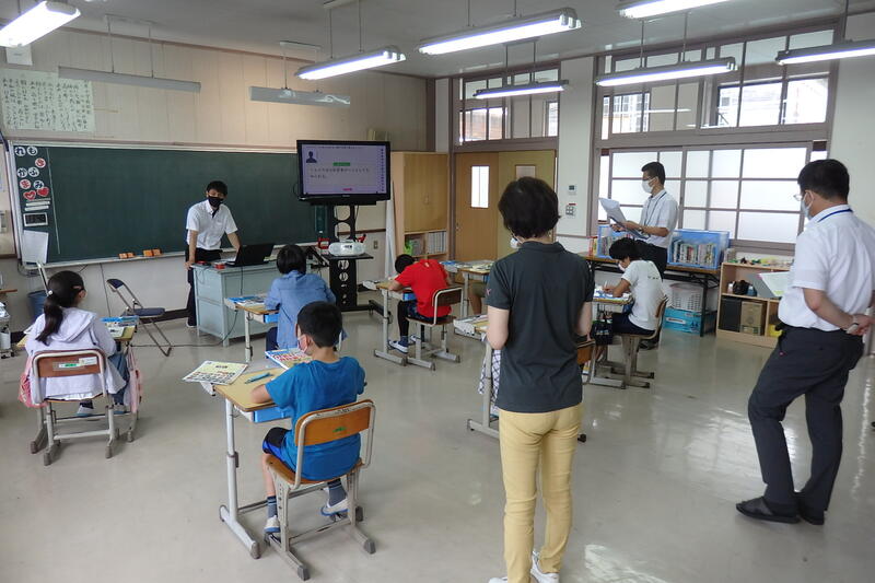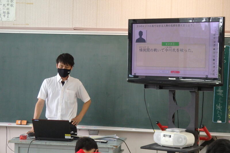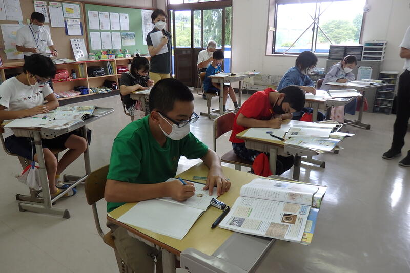 町の教育委員や教育行政の方々が参観される中、6年生は、社会科の授業を行いました。