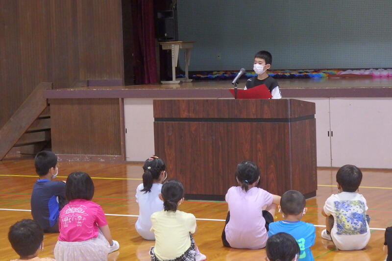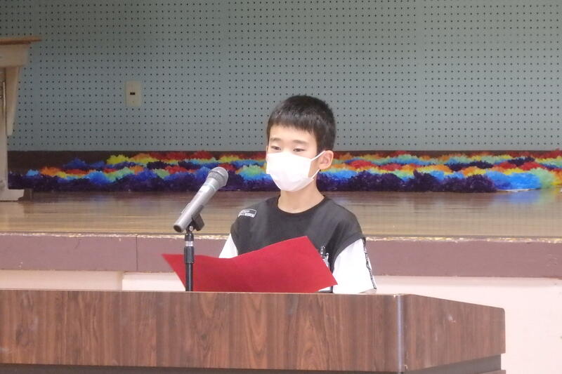 5年生の代表児童が、1学期のがんばりを発表しました。