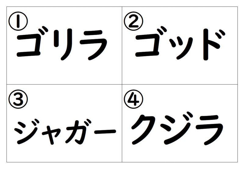 「ゴジラ」の名前は、①~④のどれとどれを組み合わせたものでしょうか?!