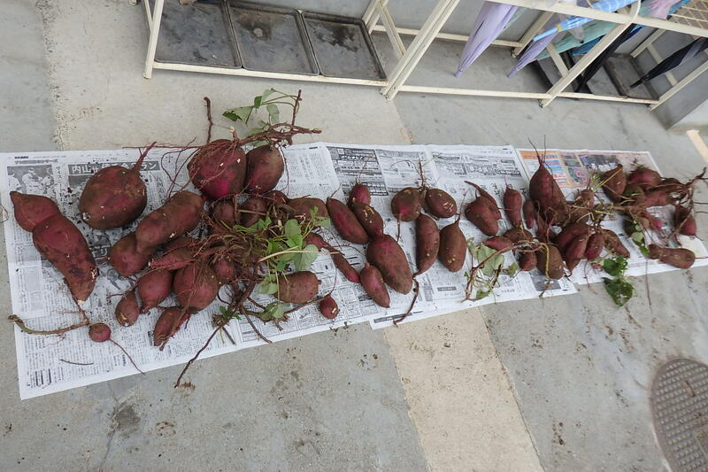 大小のサツマイモを収穫しています。