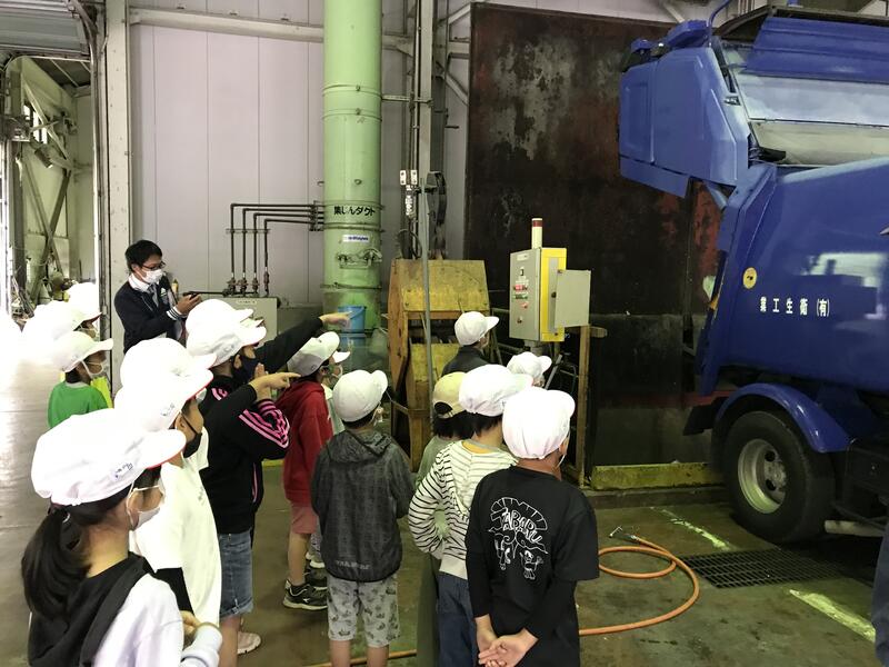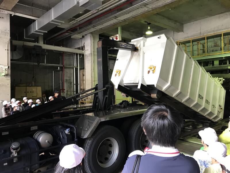 ゴミが、焼却施設に入れられる様子を見学しました。
