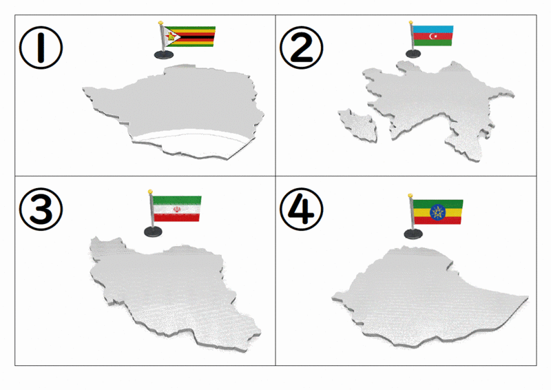 アゼルバイジャンの国旗と国の形は、①~④のどれでしょうか?!