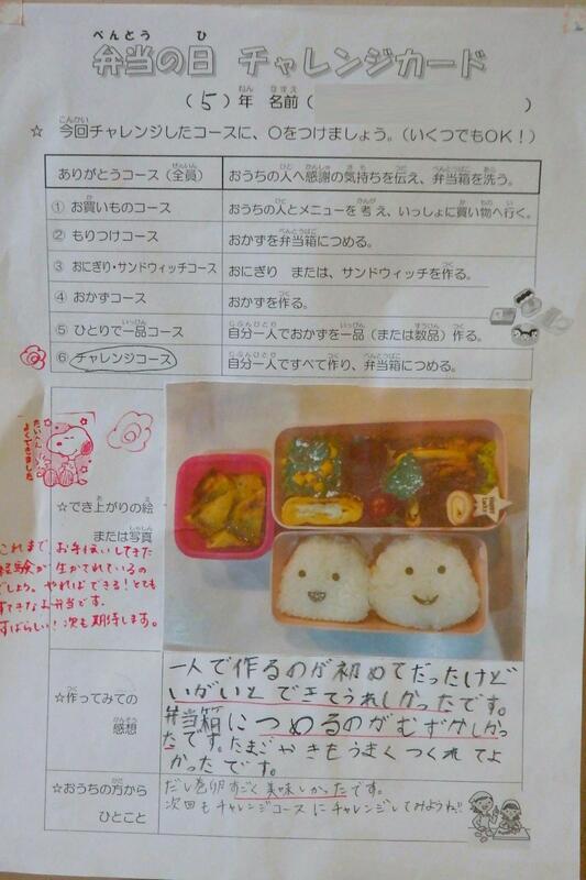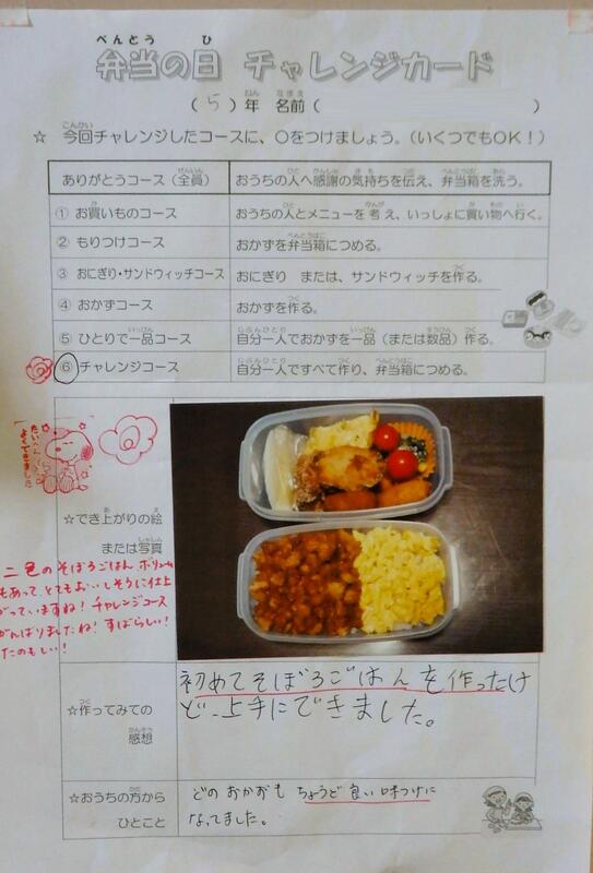 5・6年生は、自分で弁当をつくる「チャレンジコース」を目標に取り組みました。