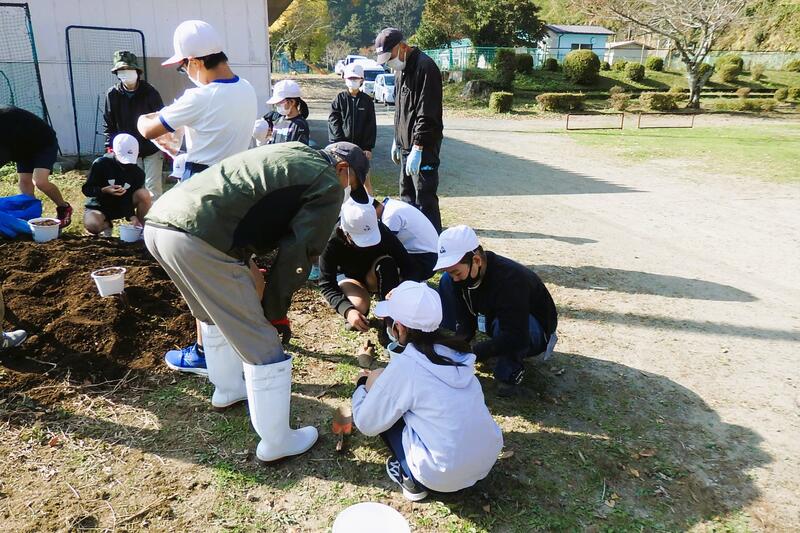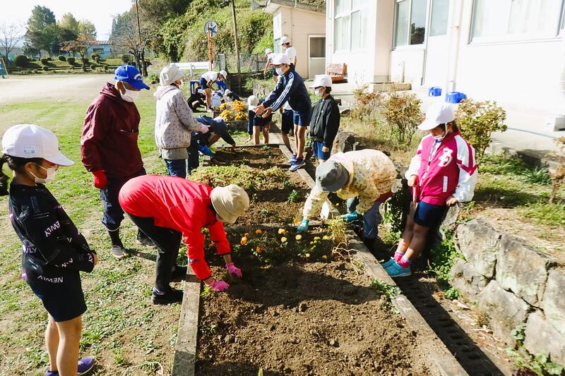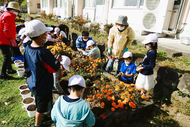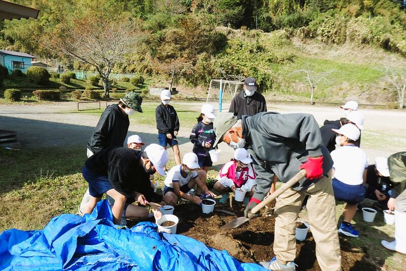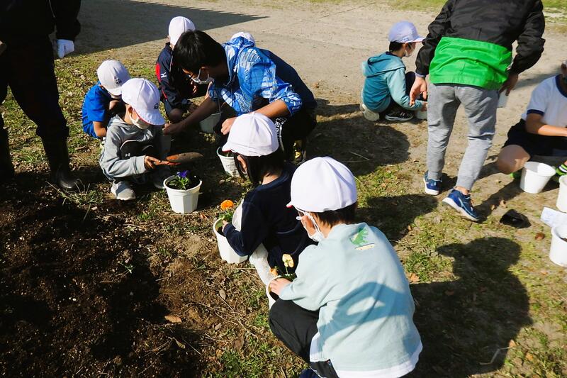 地域の方々が、土を入れたり移植の仕方を指導したりしてくだいました。