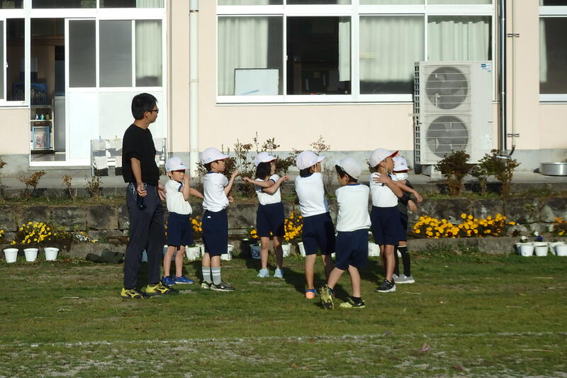 1年生は、準備体操中です。