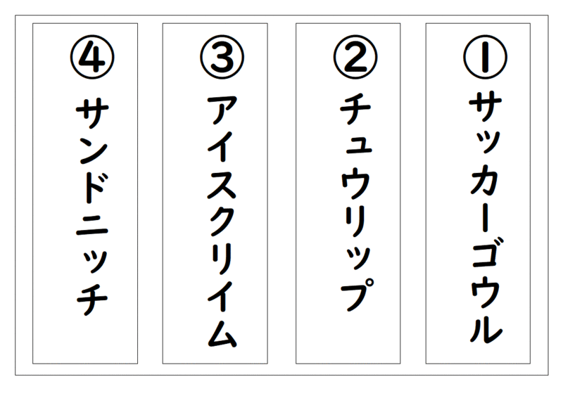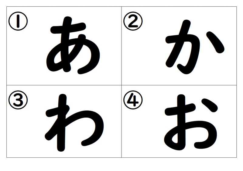 ①~④の ひらがなで、ひとつだけ ほかのひらがなと ちがうルールの ものがあります。