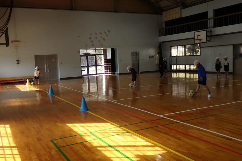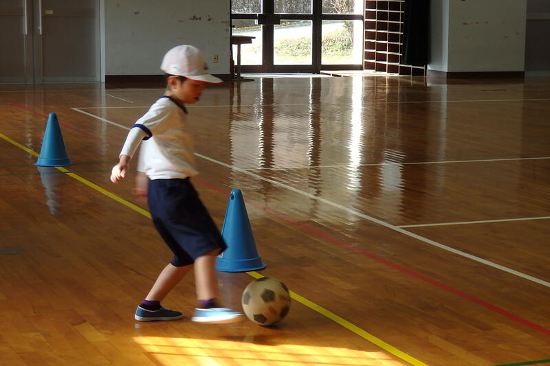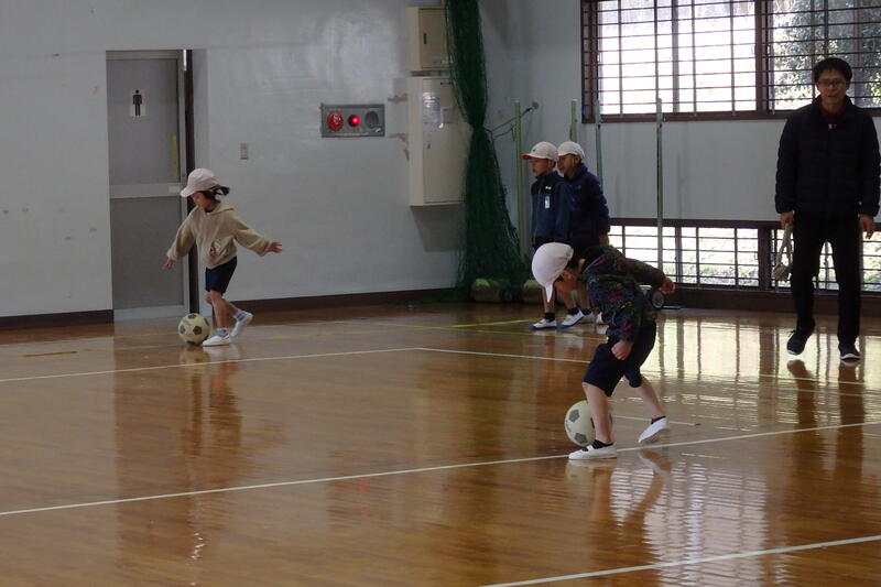 ボールを蹴りながら、体を移動する動きも行わせます。