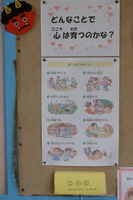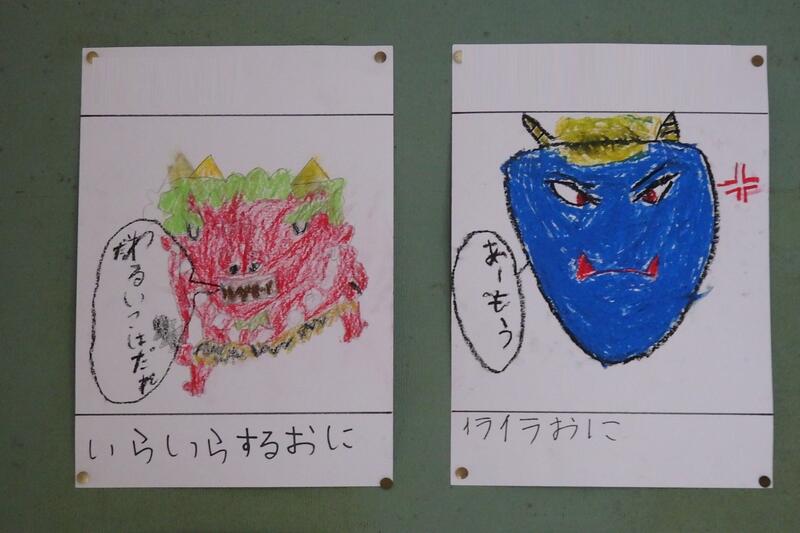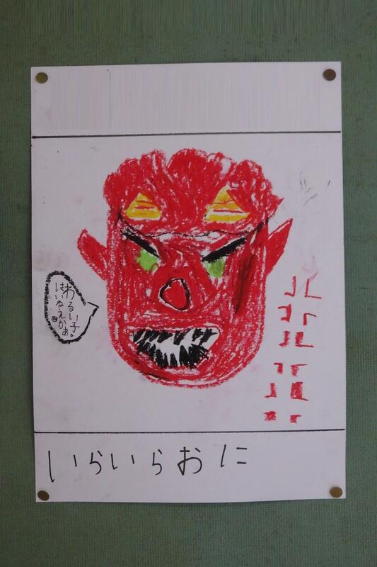 ちなみに、このかわいらしい鬼は、給食調理員の甲斐先生が、描いてくださいました。