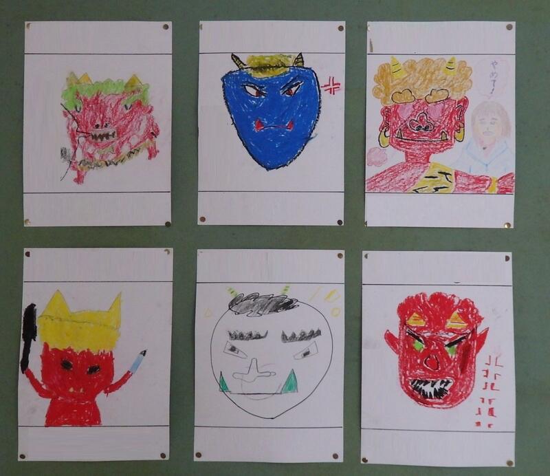 1年生と担任が、鬼の絵を描きました。