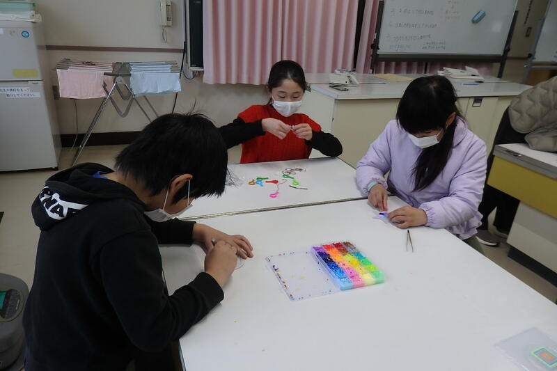 アイロンビーズを制作中。