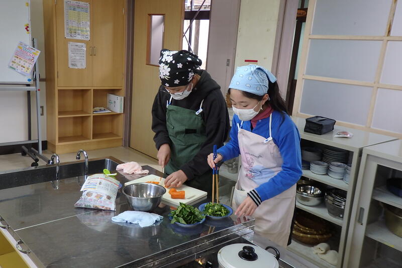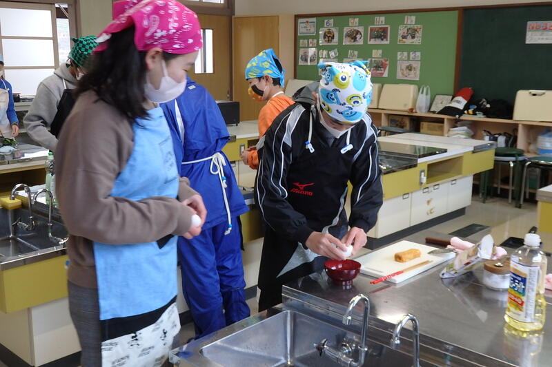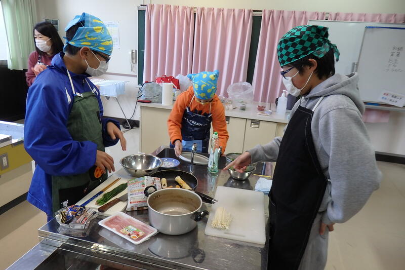 野菜をゆでたり卵焼きを作ったりと、2/24の「弁当の日」に向け、栄養や調理方法を考えながらの実習です。