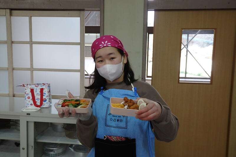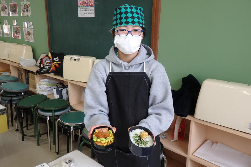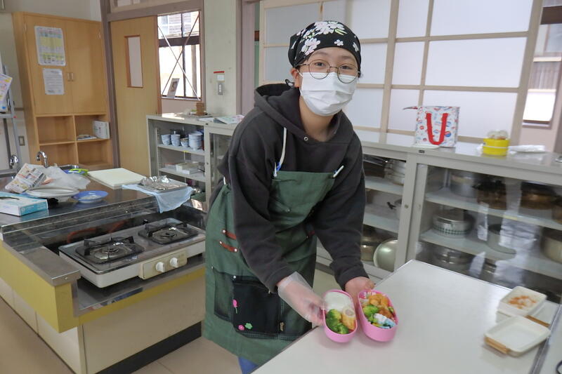 作った弁当は、給食の時間に食べました。