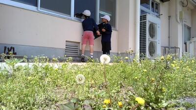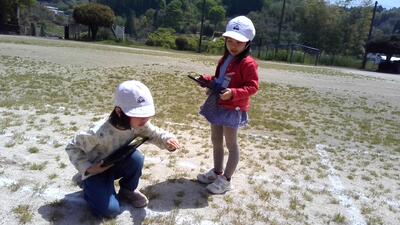 校舎や校庭で「春さがし」をしました