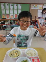 田原小学校では、1ヶ月に1回、給食のメニューに「しあわせにんじん」の日があります。