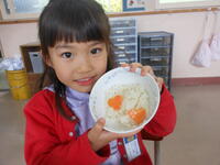 こどもたちは、しあわせにんじんが入っていないか、ワクワクしながら食べていました。