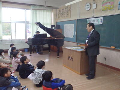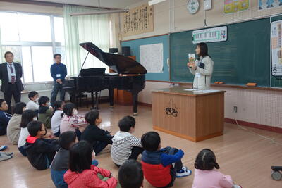 一番は、歌のお兄さん風の歌い方、二番はオペラ風の脚色で、校長先生の見事な歌に子どもたちも目をキラキラ輝かせていました。