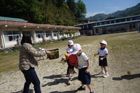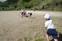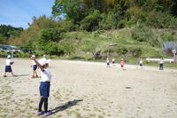 体力テストに向け、投げることに親しむため