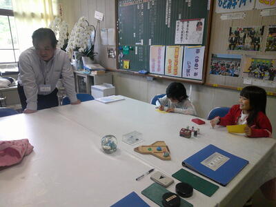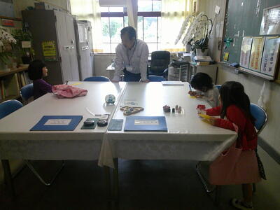 昼休みの校長室に、かわいいお客さんが遊びに来ています。