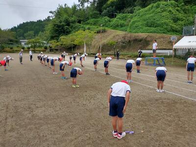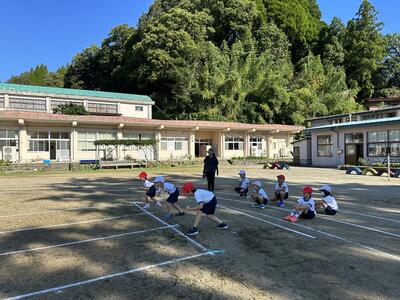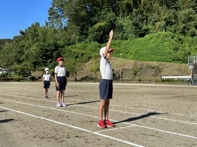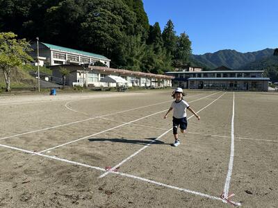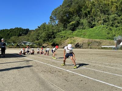 涼しい朝を利用して、徒競走の練習をしました。
