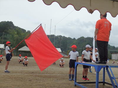 出場して頑張りました。上学年徒の児童は、応援リーダーを含め競技役員も行い、競技