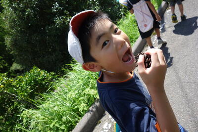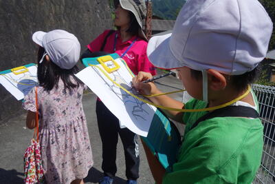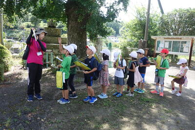 自分たちの目や耳で自然を感じたりしながら、探検しました。