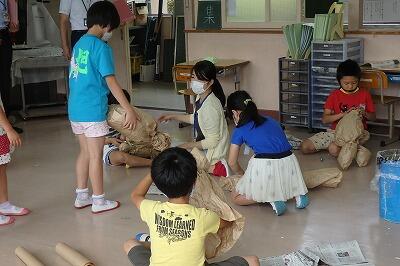 2・3年生は、図画工作科の学習で「くしゃくしゃギュッ」とした作品を