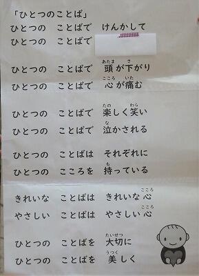 「思いやりのある言葉をつかおう」に関連して、詩を紹介しました。