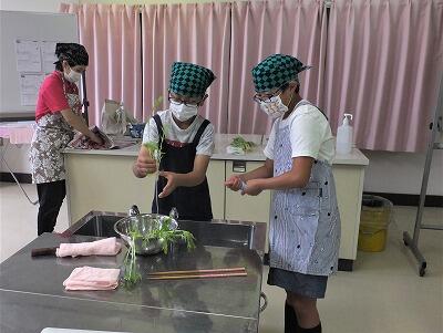 5年生が、ジャガイモ、水菜、たまごを使って調理実習をしました。