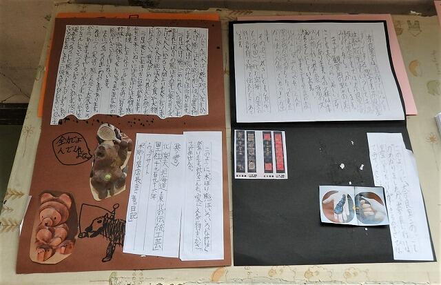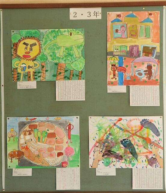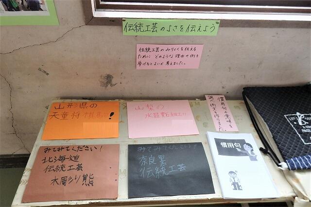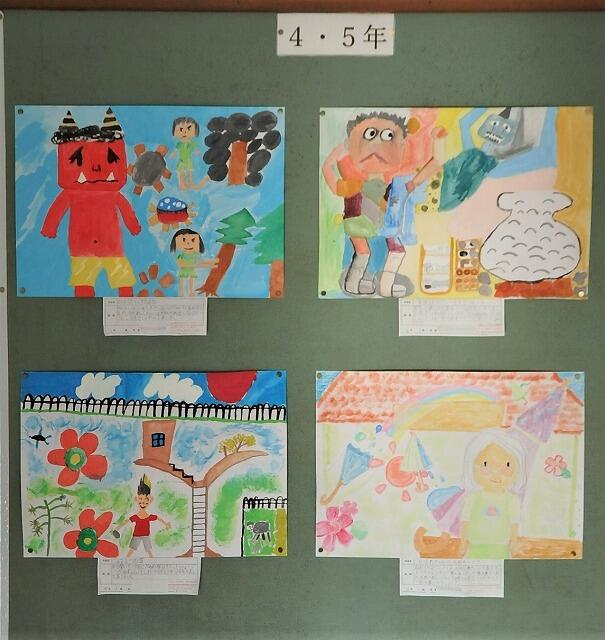 4年生と5年生の教室前の廊下に、学習の成果が掲示されています。