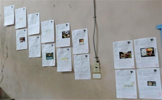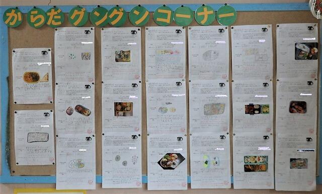 「からだぐんぐんコーナー」に、「弁当の日」に作った手作りお弁当の記録がたくさん掲示されています。