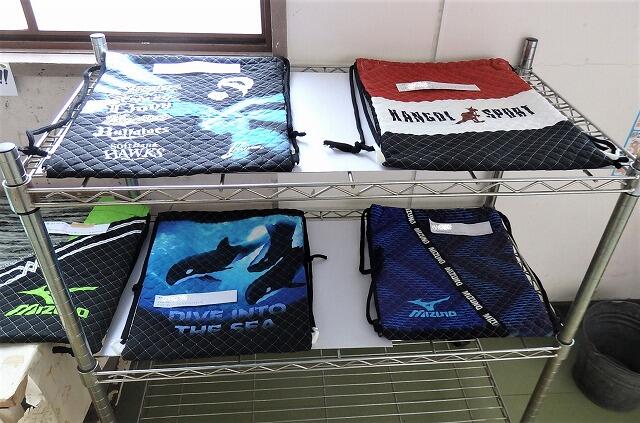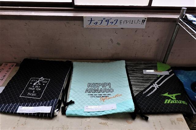 5年生は、家庭科で作成したナップザックを掲示しています。