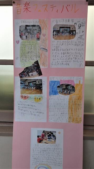 音楽フェスティバルや宿泊学習の感想や思い出なども壁新聞にして掲示してあります。