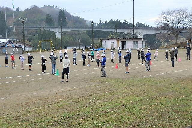 運動場で、「体ぐんぐん」タイムが始まりました。今日は、何をするのかな?!