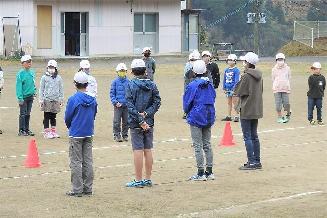 体育委員が、活動の内容を説明します。今回は、「じゃんけん全力疾走」です。