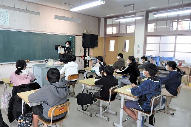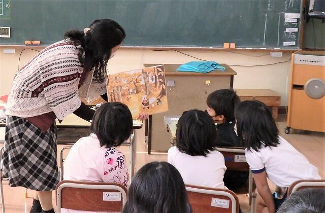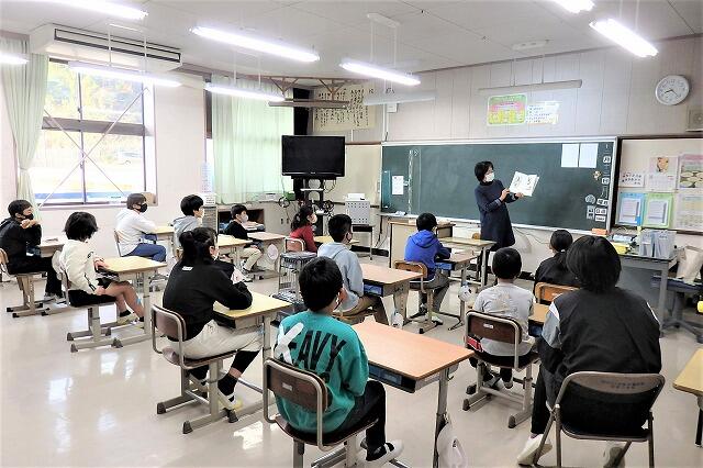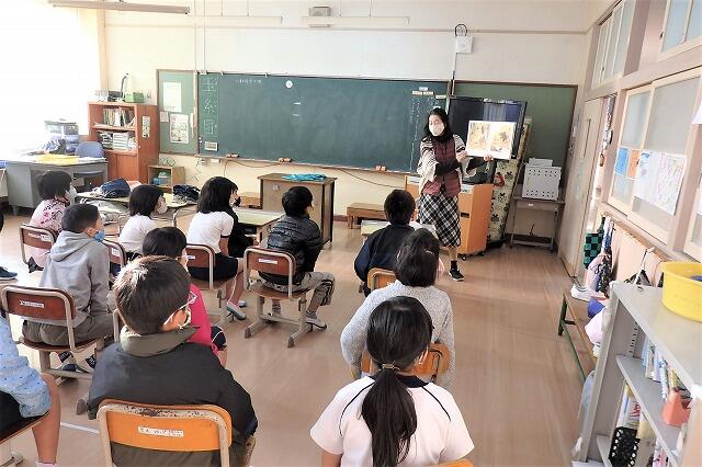 「おはなし くれよん」の方々に、読み聞かせをしていただきました。 4・5年生の教室です。